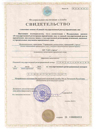 Свидетельство ЕГРЮЛ