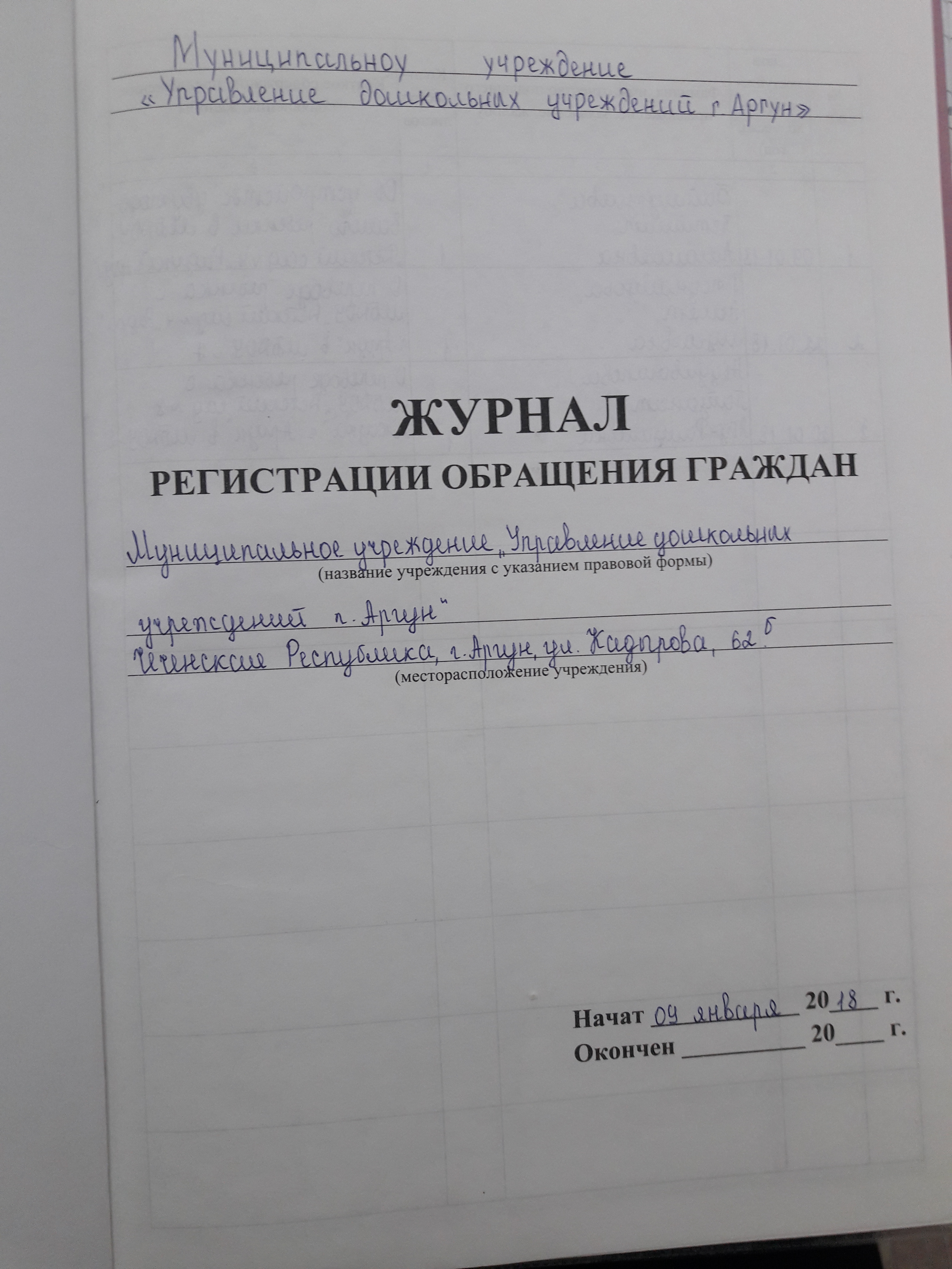 Журнал обращений граждан