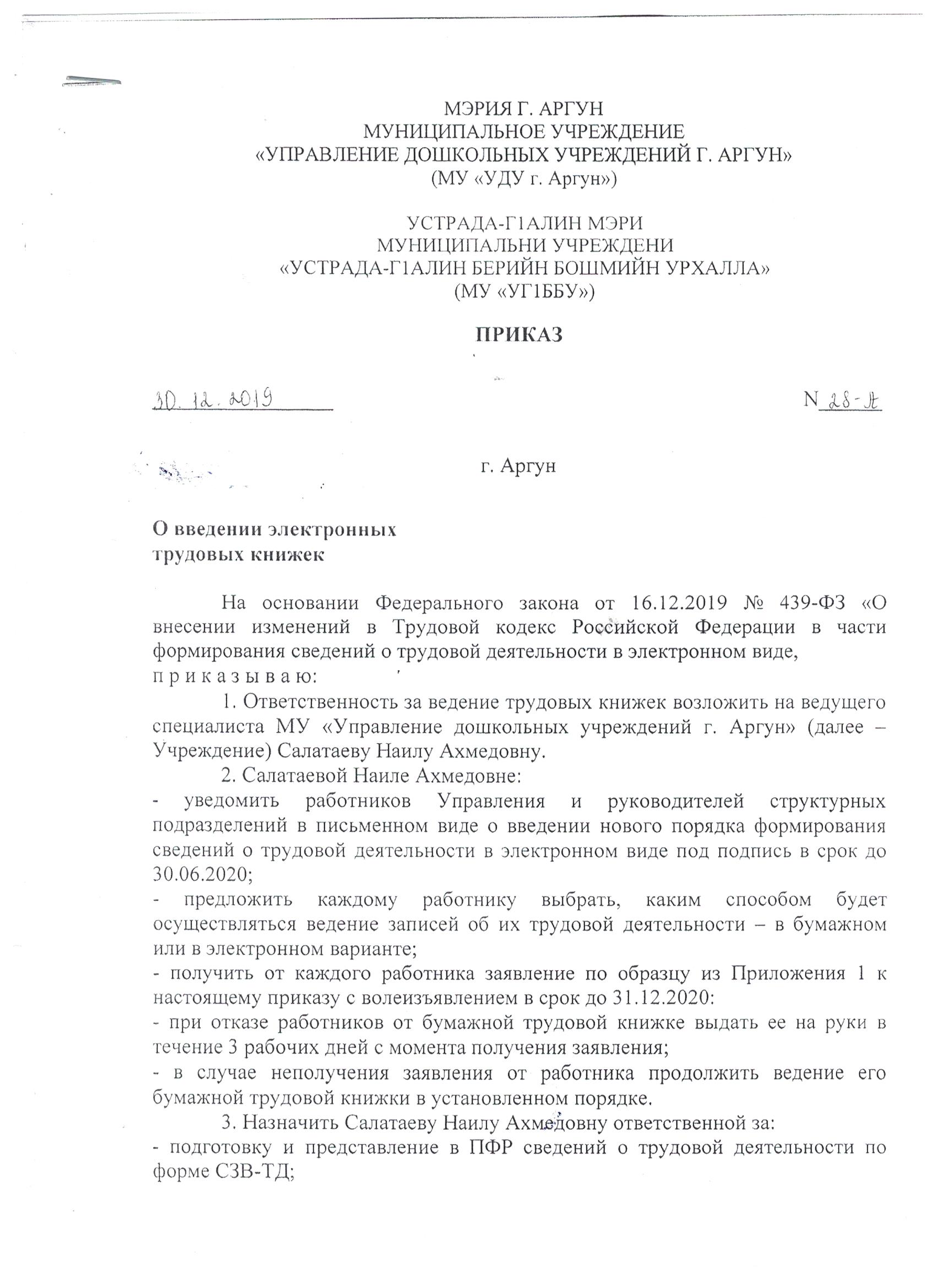 Структура МУ «Управление дошкольных учреждений г. Аргун»