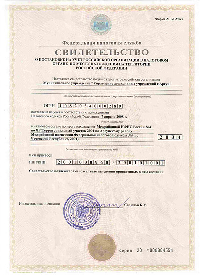 Свидетельство Чеченстат