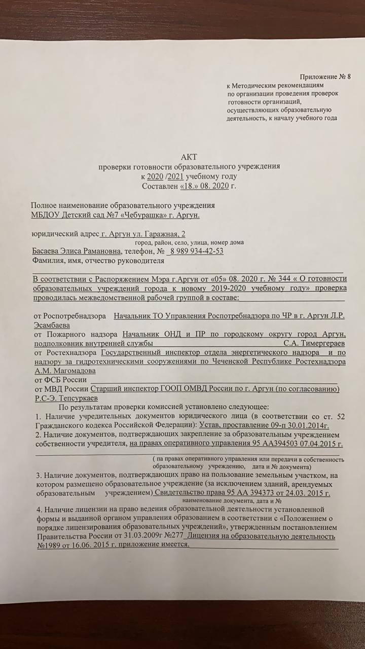 Акт проверки Министерством образования и науки Чеченской Республики