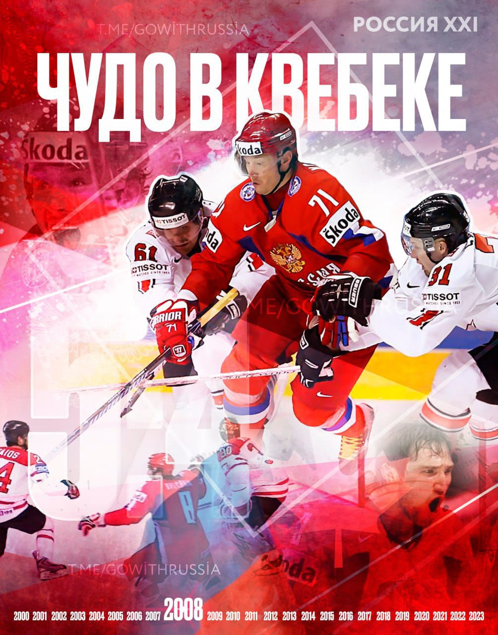 В 2007 году Чемпионат мира по хоккею проходил в России, но тогда нам не удалось выиграть. А вот следующий турнир состоялся в Канаде.